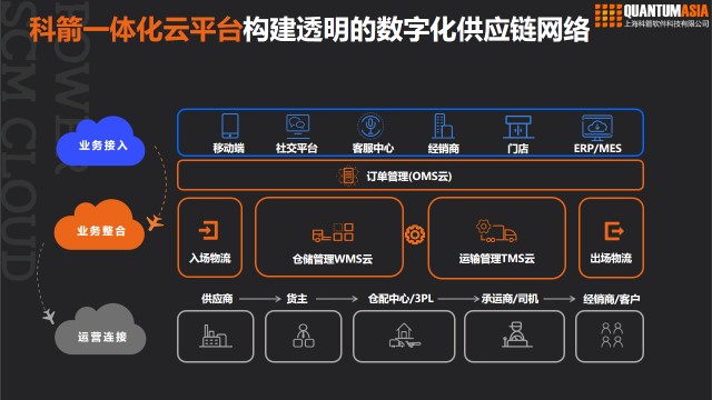 科箭供應鏈管理云平臺-Power SCM Cloud,是一個整合訂單管理(OMS)、運輸管理(TMS)、倉儲管理(WMS)等供應鏈流程的云解決方案。該方案基于多年制造及物流行業經驗,融合云計算、移動、社交、大數據及消費級產品設計技術,讓用戶使用更便捷,讓管理決策更智慧,讓企業連接更順暢。通過最佳實踐的實施方法論,可以幫助客戶快速實現投資回報。