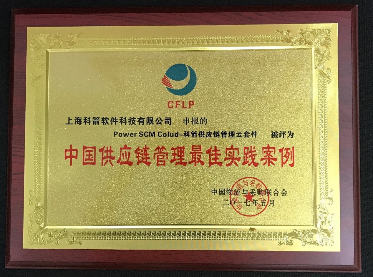 科箭供應鏈管理云套件喜獲“中國供應鏈管理最佳實踐案例“獎項