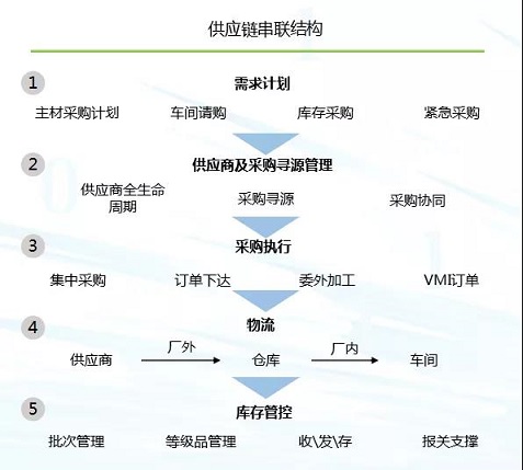 從供應(yīng)商的供應(yīng)商到客戶的客戶,之間所有的產(chǎn)品以及服務(wù)的流轉(zhuǎn)都屬于供應(yīng)鏈的范疇。供應(yīng)鏈轉(zhuǎn)型,不能僅僅考慮某一點,應(yīng)該是全盤化的考慮。在項目實踐中,我們更多關(guān)注于供應(yīng)鏈需求計劃的產(chǎn)生、做供應(yīng)商的尋源、采購執(zhí)行、庫存管理。