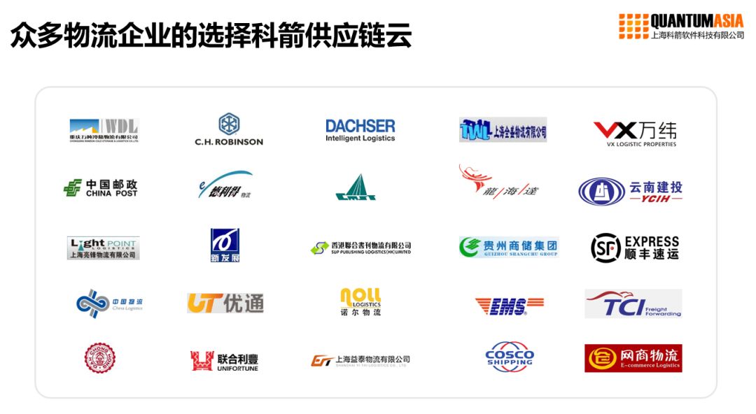 科箭在供應鏈領域深耕16余載,系統內置了很多行業業務的最佳實踐,其專業的團隊也獲得了客戶的高度認可,在三方物流領域積累了眾多行業領先客戶,如萬緯冷鏈、云南建投、中遠海運、德利得、諾爾物流、德莎物流、美國最大的無車承運人C.H.Robinson等。
